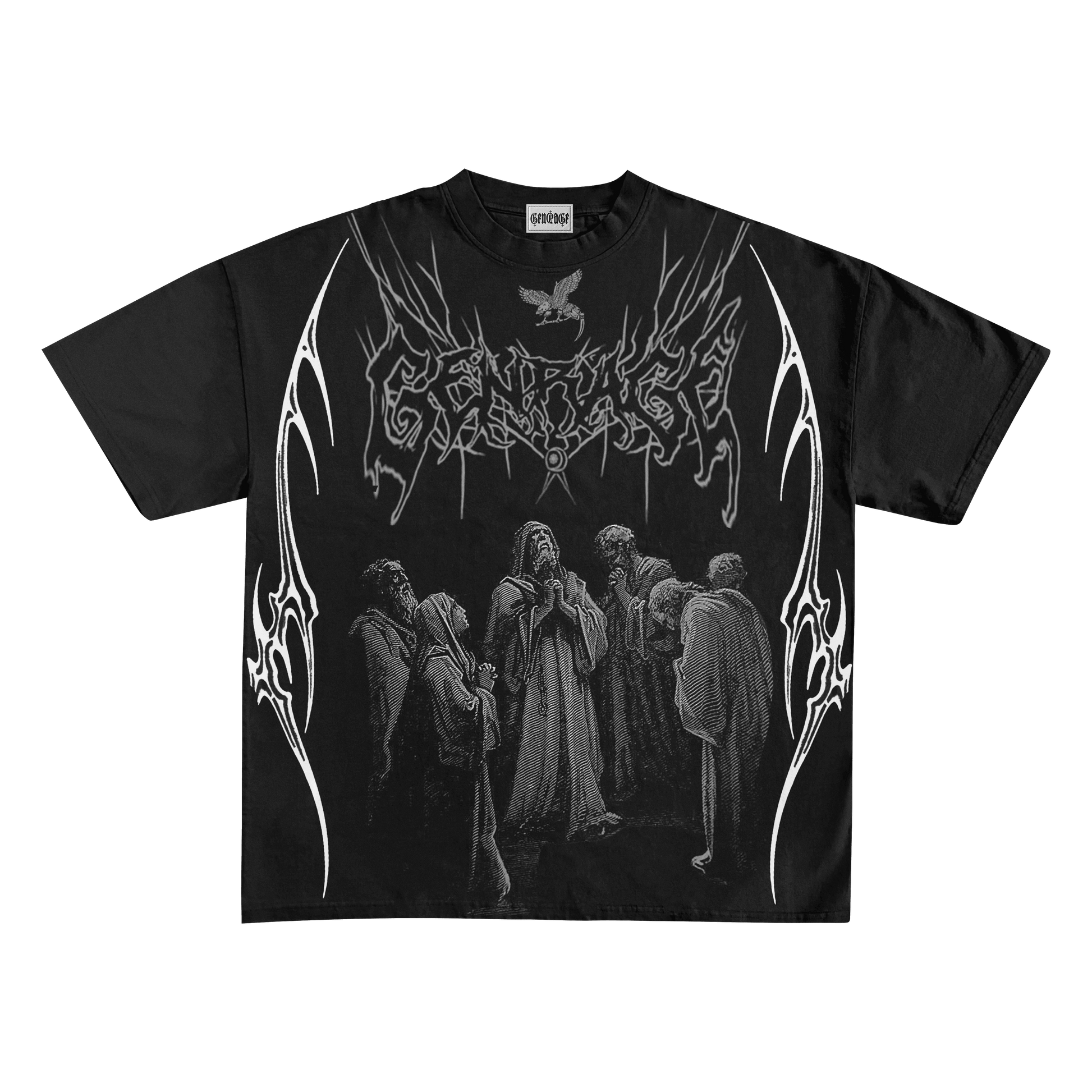 240 GSM Cotton Terry Crewneck Drop Shoulders Boxy Oversized Fit Jet Black Unique Colour Biowashed Combed Hypo-Allergic Fabric GOTS Organic Cotton Certified HAIL GENRAGE RAGE STUDIOS Proudly Made in India. note the above product is artisan stitched and screen printed, crafted by human hands, not machines