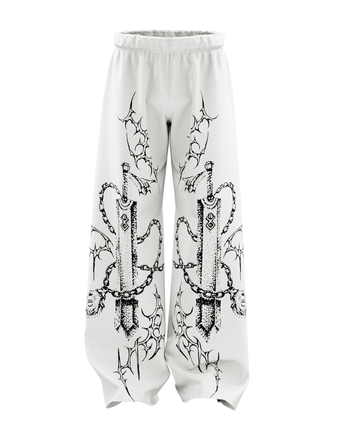 100 Premium Biowashed Cotton Elastic Drawstrings Attached Baggy Straight Fit Sweatpants Crystal White Colour Biowashed Combed Hypo-Allergic Fabric GOTS Organic Cotton Certified TOJI RAGE STUDIOS Proudly Made in India note the above product is artisan stitched and screen printed, crafted by human hands, not machines