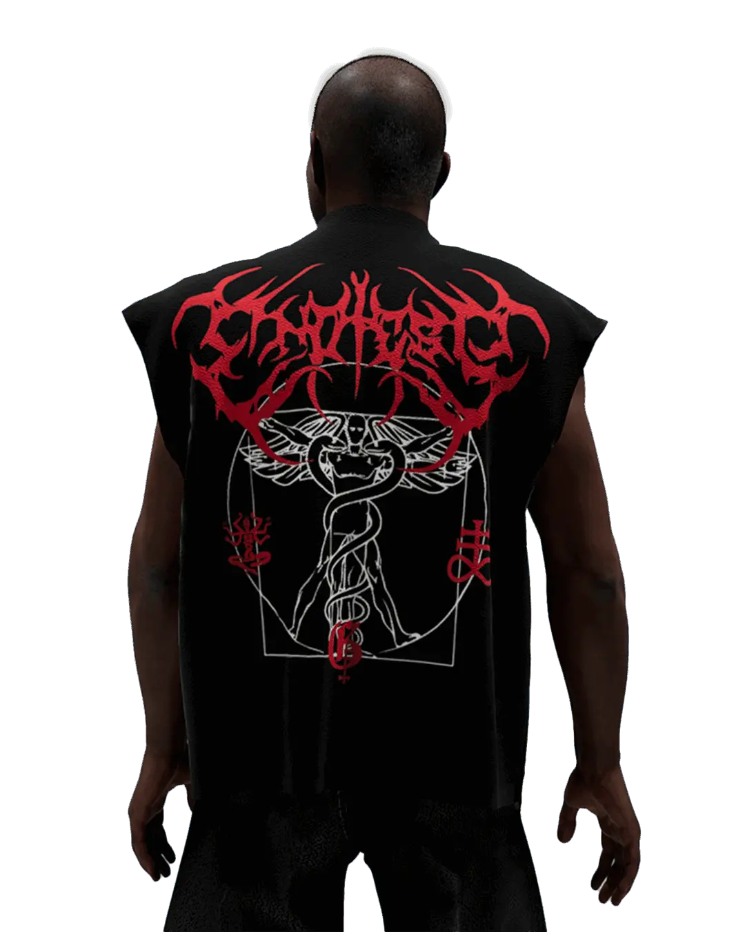 HEAVYWEIGHT PREMIUM COTTON Utility knitted vest can be worn as active streetwear, for hiking, and in the gym. VITRUVIAN Design by Gen Rock Crew neck Boxy Vest Jett Black Unique Colour 100 Biowashed amp Combed Cotton Terry 240 GSM Composition Proudly Made in India.